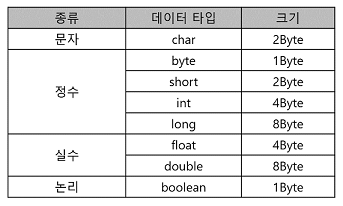- Java의 데이터 타입 크기 및 기억 범위