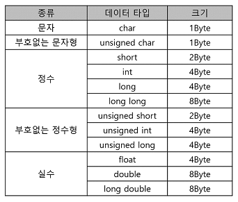 - C/C++의 데이터 타입 크기 및 기억 범위