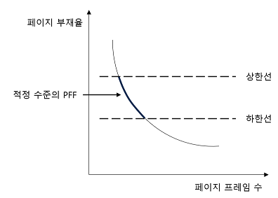 - 페이지 부재 빈도(PFF; Page Fault Frequency) : 페이지 부재가 일어나는 횟수