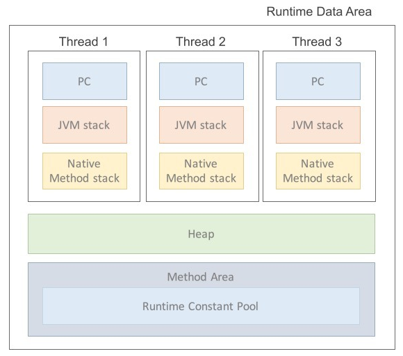 - JVM의 메모리 영역으로 자바 애플리케이션을 실행할 때 사용되는 데이터들을 적재하는 영역