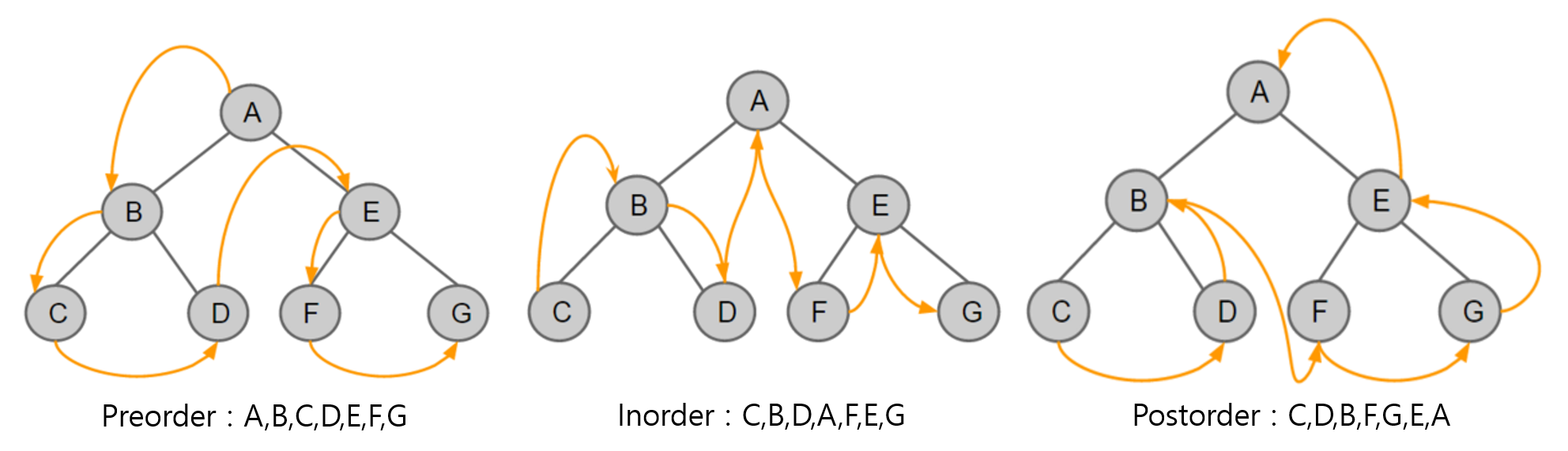 트리 순회(Tree traversal)라는 것은 어떤 목적을 위해 트리의 모든 노드를 한 번씩 방문하는 것을 말한다. 그게 노드마다 값에 mapping을 한다던지, 탐색을 한다던지 여러 목적이 있을 수 있다는 말이