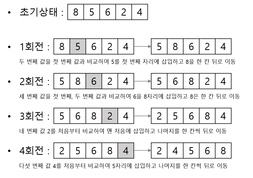- 이미 순서화된 파일에 새로운 하나의 레코드를 순서에 맞게 삽입시켜 정렬